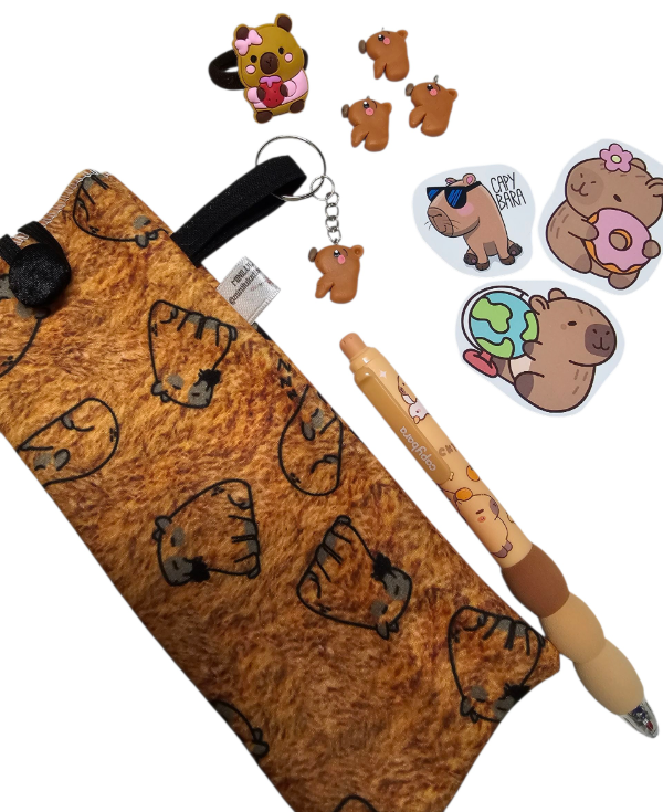 Una bolsita de tela con botón para colgar modelo capibara